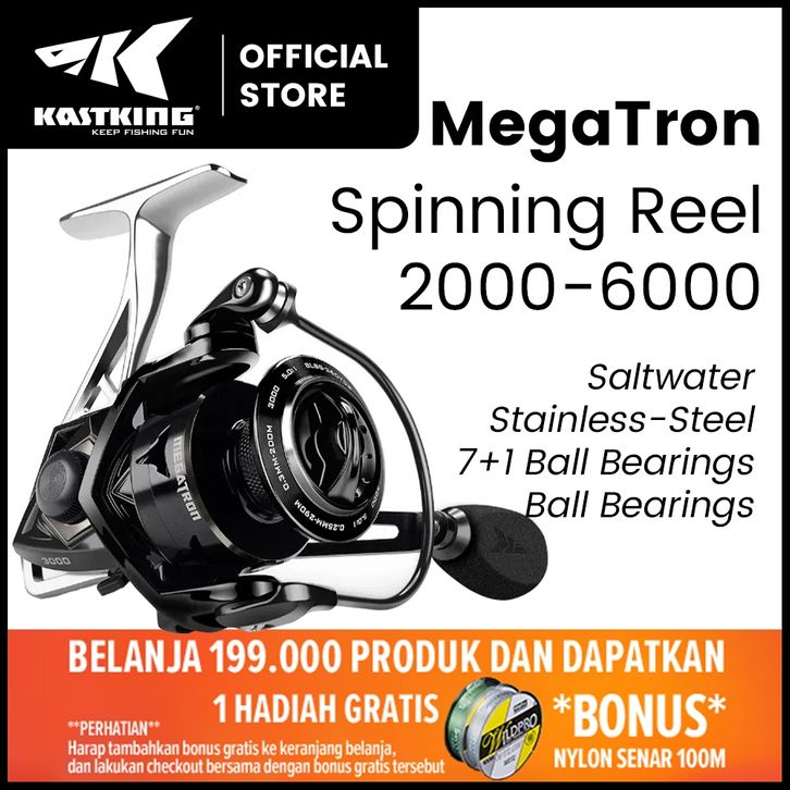 TERLARIS [OFFICIAL] KASTKING MEGATRON Reel Pancing, Saltwater Spinning Gulungan Pancing Putar, Rigid Aluminum Frame 7+1