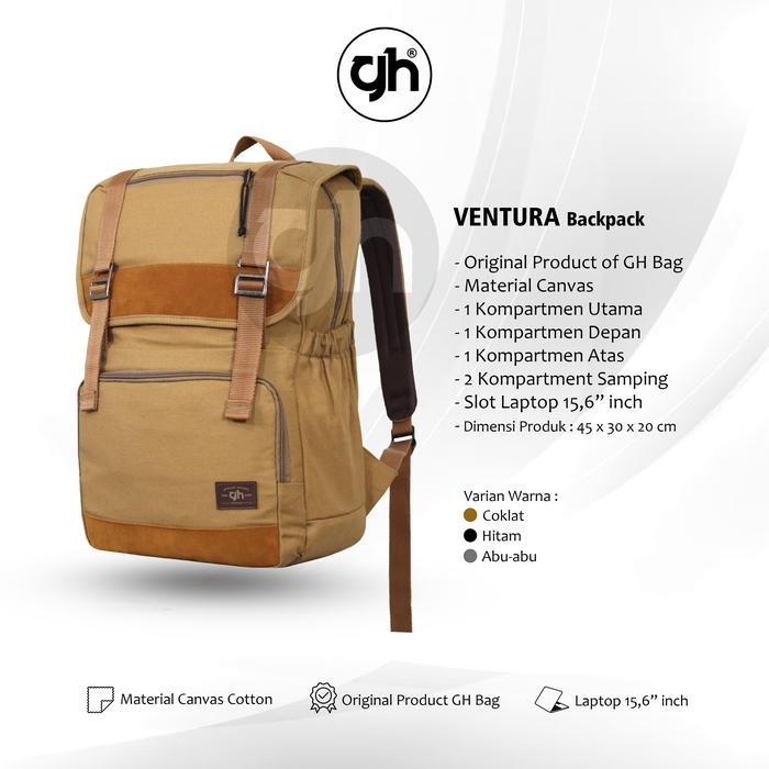 GH-Bag Tas Ransel Canvas VENTURA Backpack Tas Sekolah Tas Kerja Tas Travelling Tas Laptop 15,6" Inch