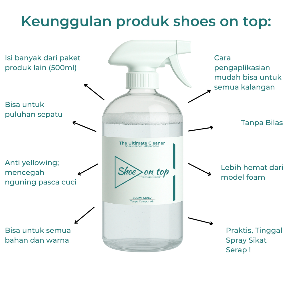 SHOE ON - Pembersih Sepatu Kanvas Leather Suede Mesh Putih dan Warna Tanpa Campur Air 500ml
