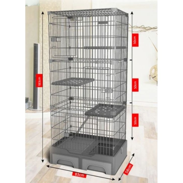 Kandang Kucing Premium 3 Layer Laci Roda Coating Carbon Import