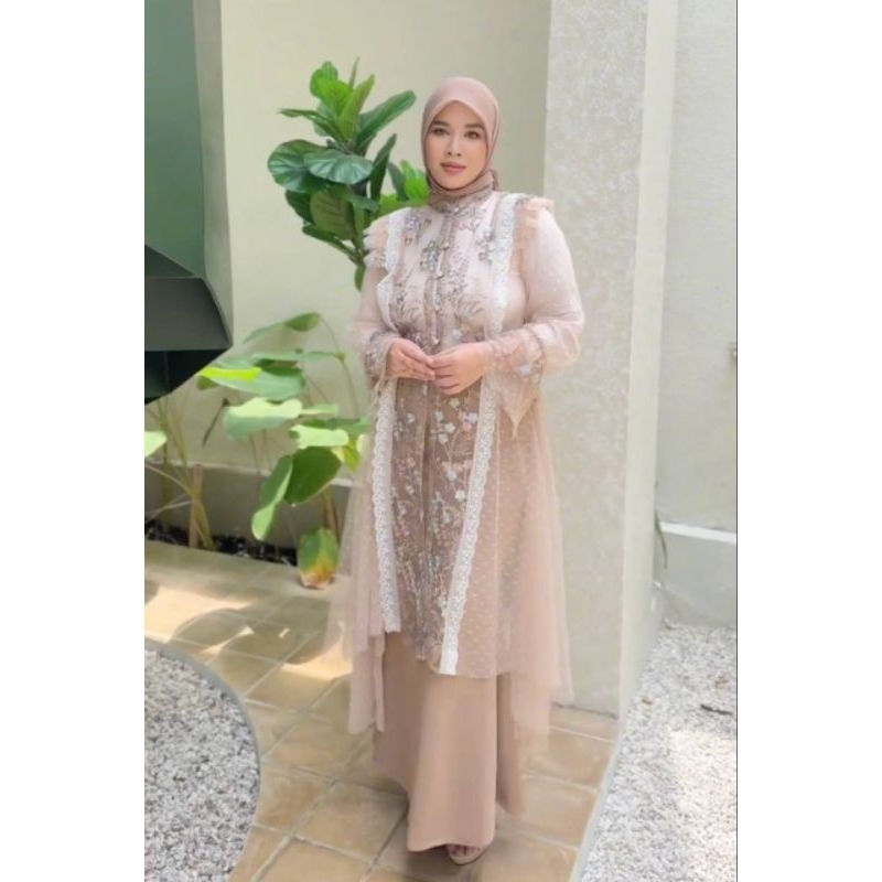 SARAH OUTER BROKAT KONDANGAN MEWAH SIMPLE ELEGANT CARDIGAN BRUKAT PANJANG WANITA MOTIF BAJU ATASAN CARDIGAN BROKAT