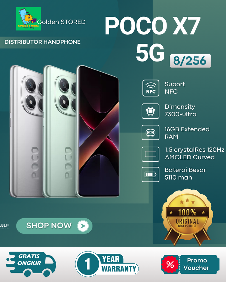 POCO X7 5G | Dimensity 7300-Ultra | Layar lengkung AMOLED CrystalRes 1,5K 120Hz