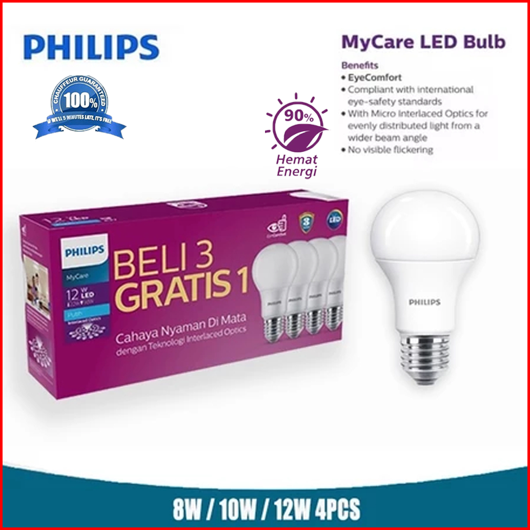 Philips Multipack Mycare Ledbulb 8w 10w 12w 4pcs 6500k Putih