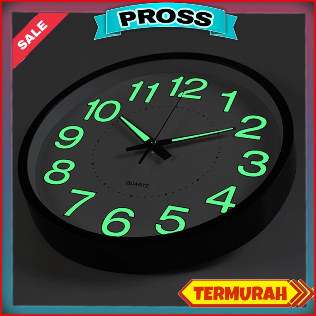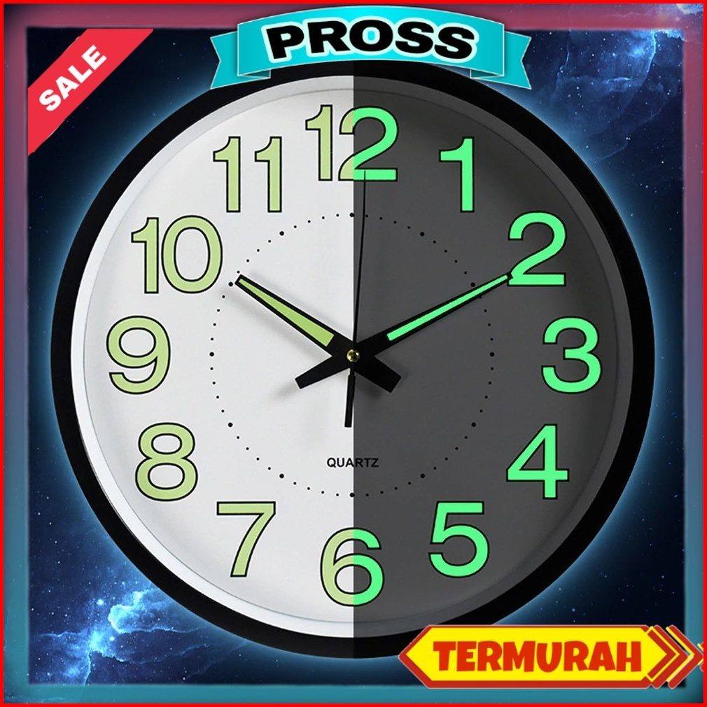 Jam Dinding Nyala Dalam Gelap Bulat Jam Dinding Bulat Quartz Creative Design Luminous Glow In The Dark 30cm - Mdb4