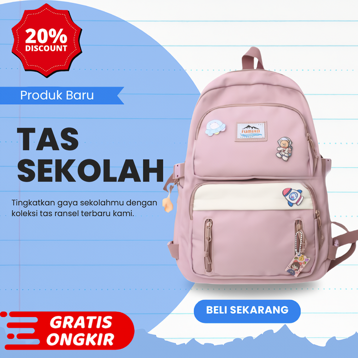 Tas Sekolah Anak Perempuan TK SD SMP Paket Combo Anti Air Model Korea K POP Terbaru Ransel Wanita Kekinian Murah