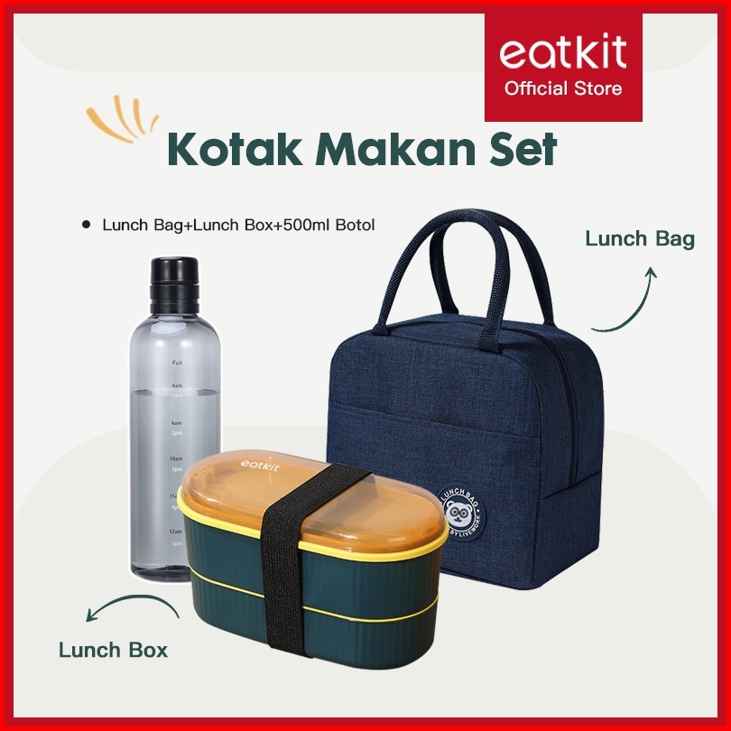 Eatkit 3in1 Lunch Box Set Kotak Makan Siang Aman Untuk Microwave Kotak Bekal Tas Thermal Lunch Bag Warna