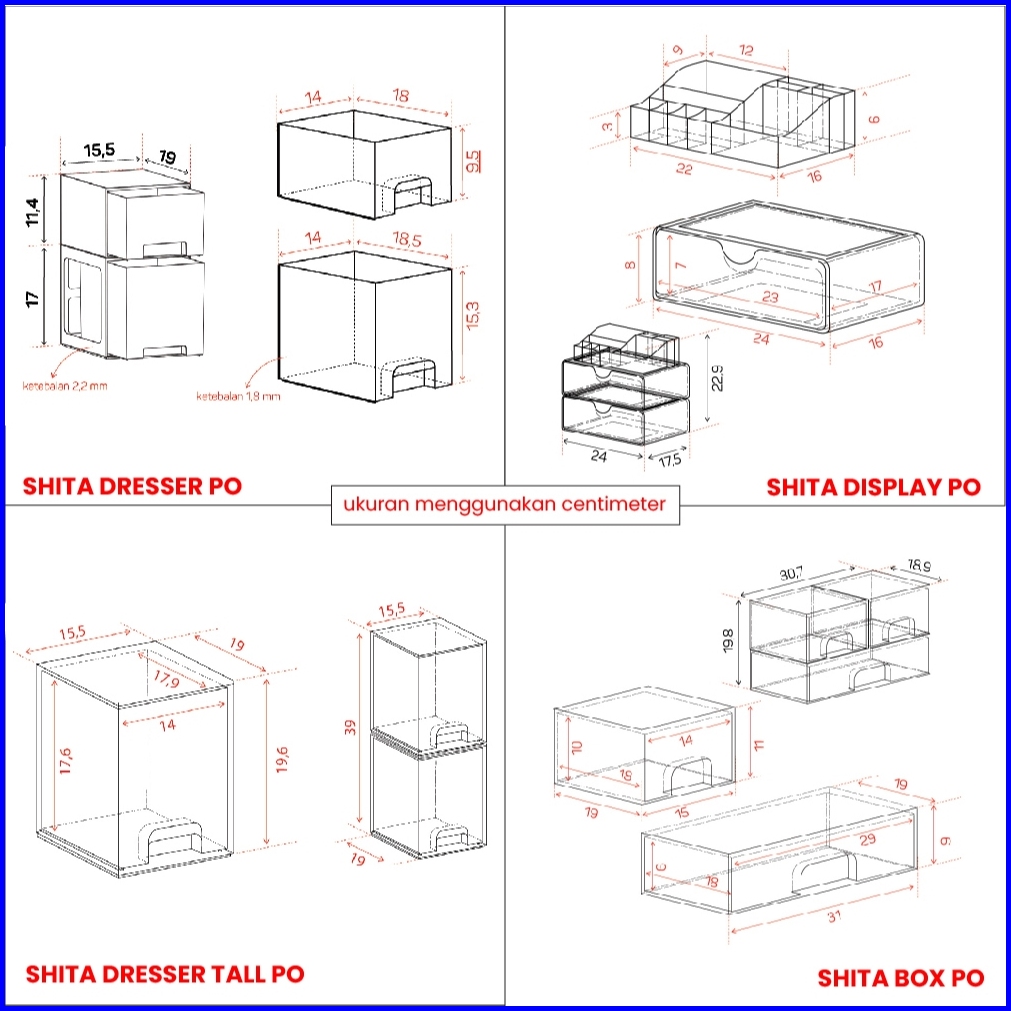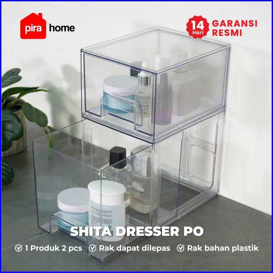 Pira Home - Shita Dresser Po Kotak Penyimpanan Make Up Bening Tempat Penyimpanan Transparan 2 Susun