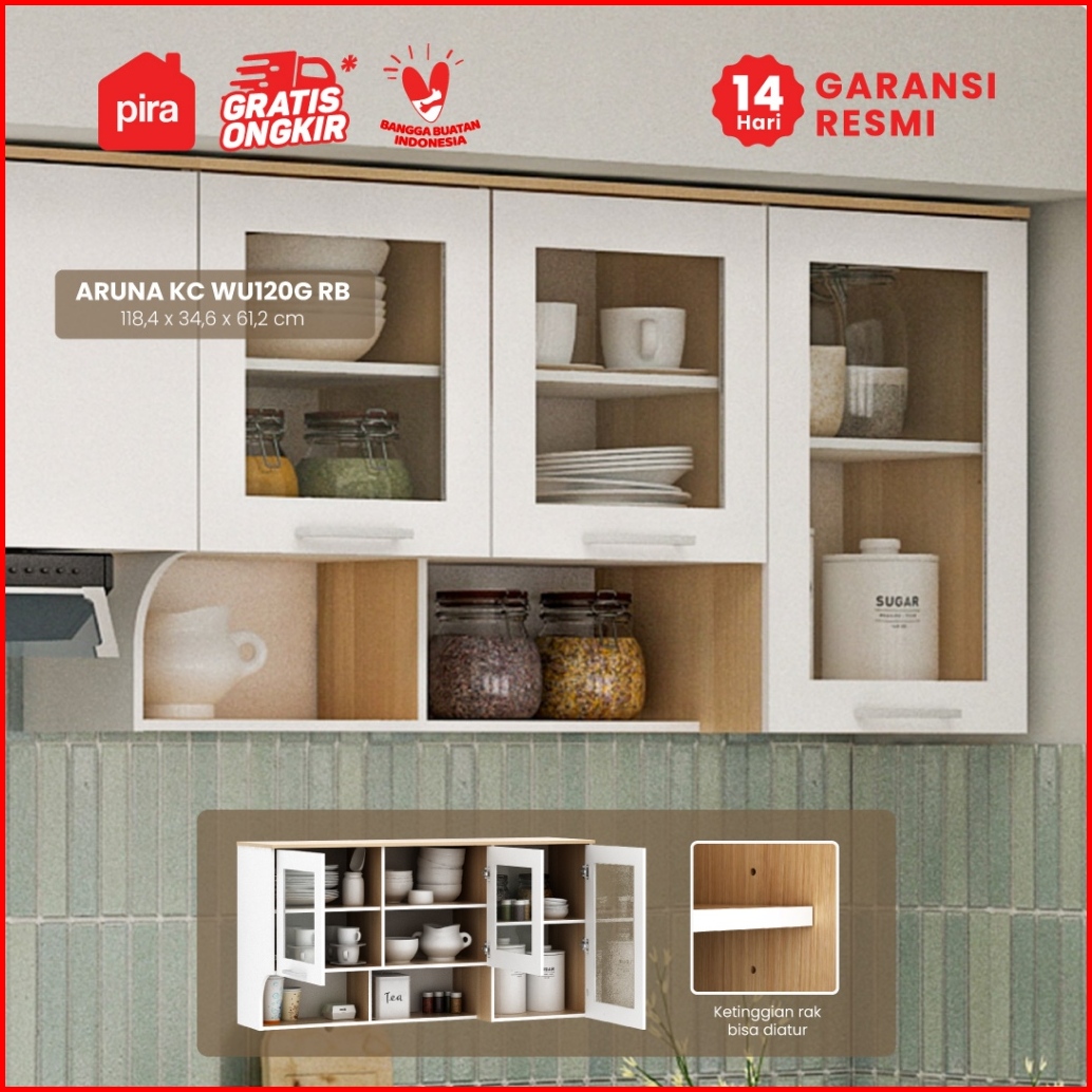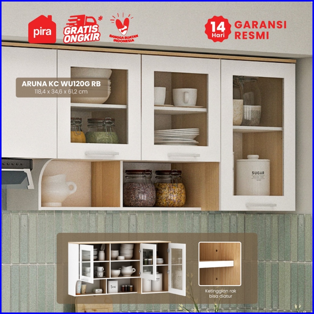 Pira Metropolis Ox - Aruna Kc Wu120g Rb Rak Dapur Rak Gantung Dapur Kitchen Set Atas 3 Pintu Kaca Dengan Rak Bumbu