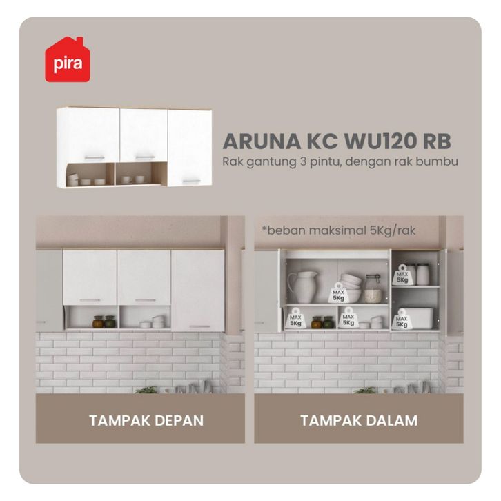 PIRA METROPOLIS OX ARUNA KC WU120 / RAK DAPUR GANTUNG / KITCHEN SET ATAS DENGAN RAK BUMBU ORIGINAL PIRA OFFICIAL STORE