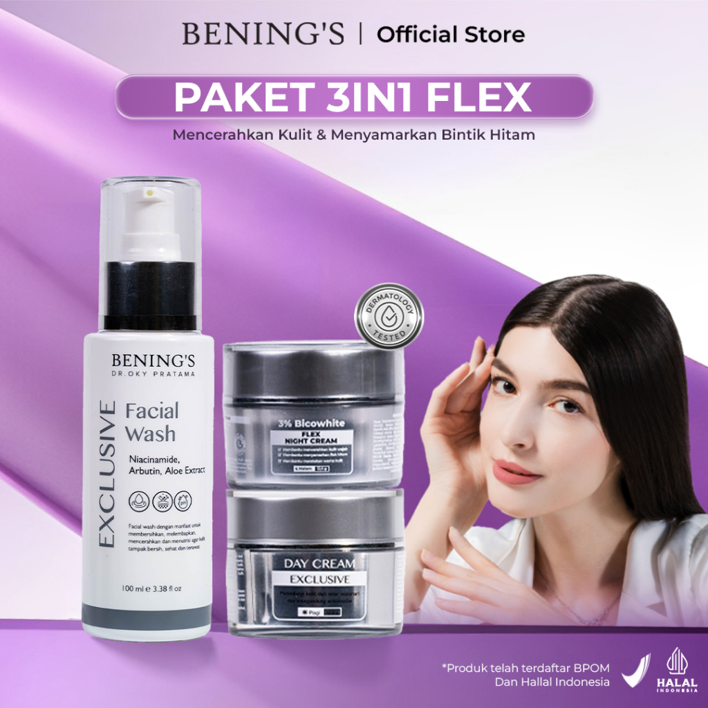 BENING'S Paket 3 In 1 Flex Memudarkan Flek Hitam Kerutan Anti Penuaan Dini Aman Untuk Bumil 3Pcs BPOM BEST SELLER