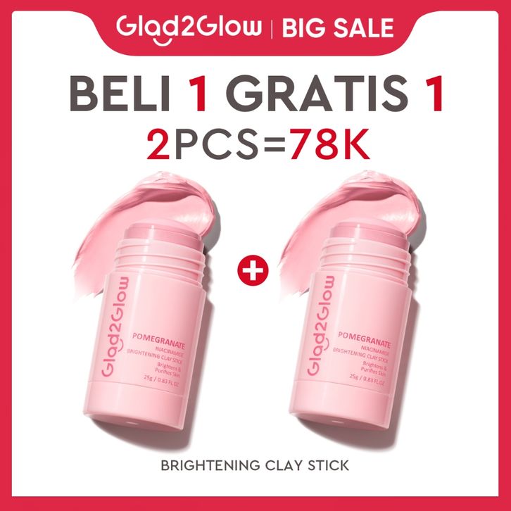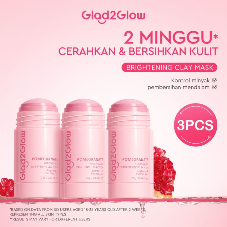 Glad2Glow Pomegranate Niacinamide Brightening Clay Stick Wajah Face Cleansing Stick Salicylic Acid Anti Pores&Acne Jeraw