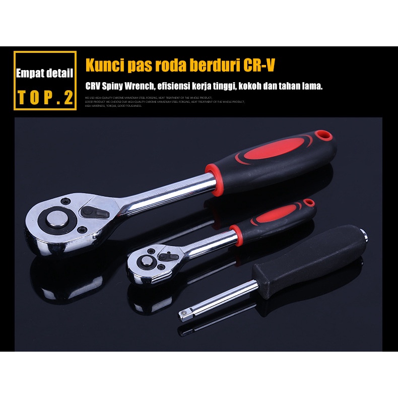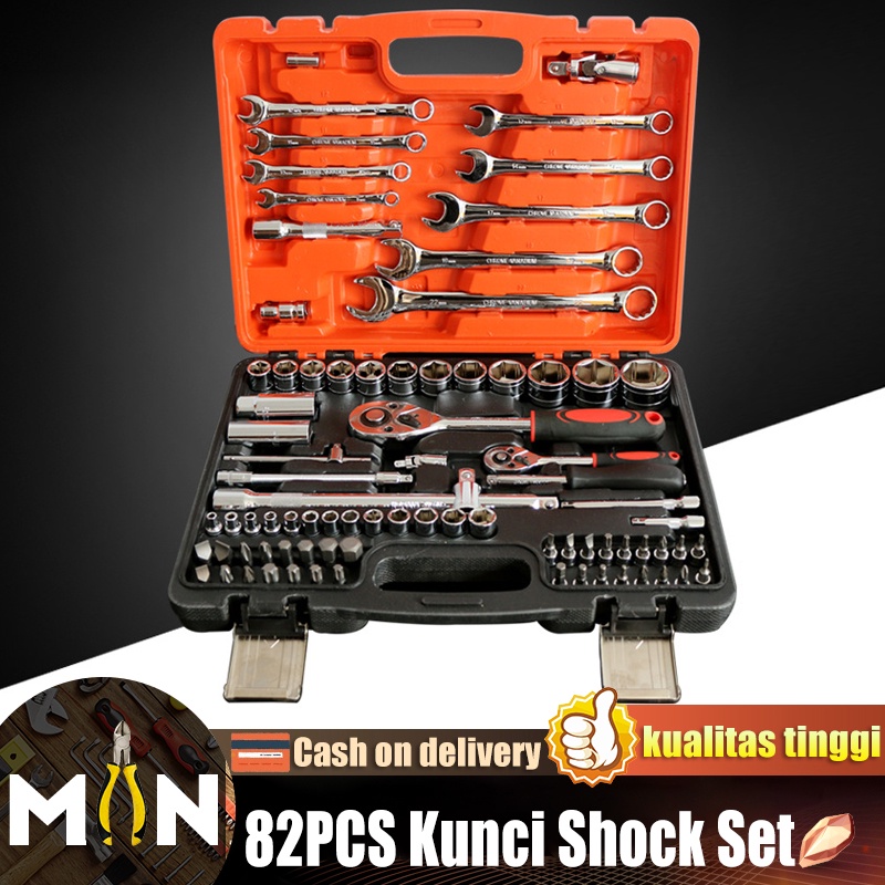 82PCS Kunci Shock Set Original 1/2、1/4 Socket Kunci Set Tool Kit Perbaikan Mobil Alat Perbaikan Mobil Profesional