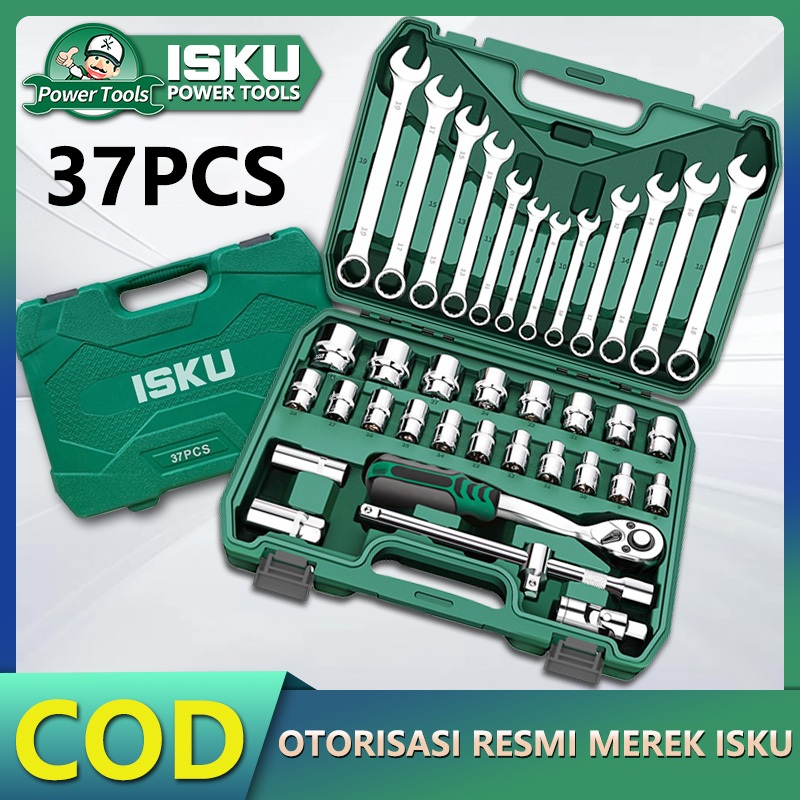 Isku Tool Kit Set Alat Kunci Sok Set 37Pcs Kunci Pas Set 12Pcs 8-19mm/Kunci Mata Sok Set Lengkap/Kombinasi 1/2 72Gigi Ga