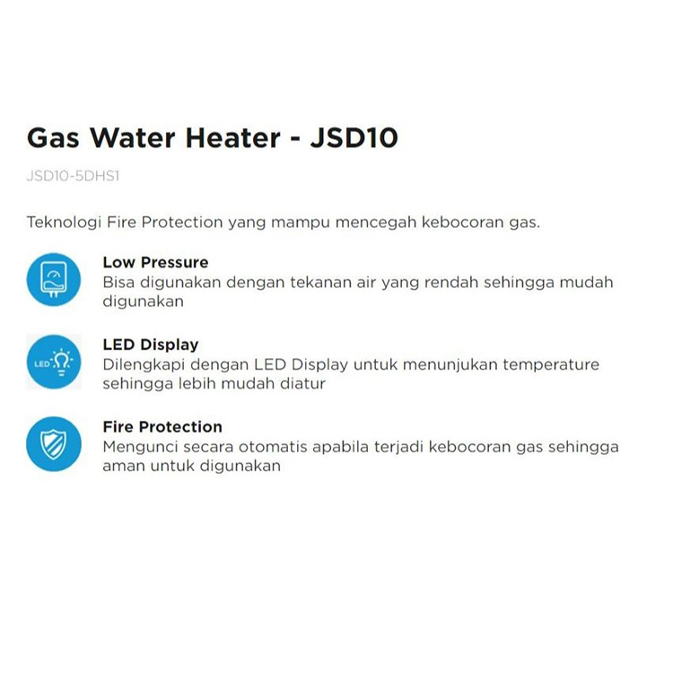Water Heater Gas Jsd10 5dhs1 Pemanas Air Mandi Kapasitas 5 Liter
