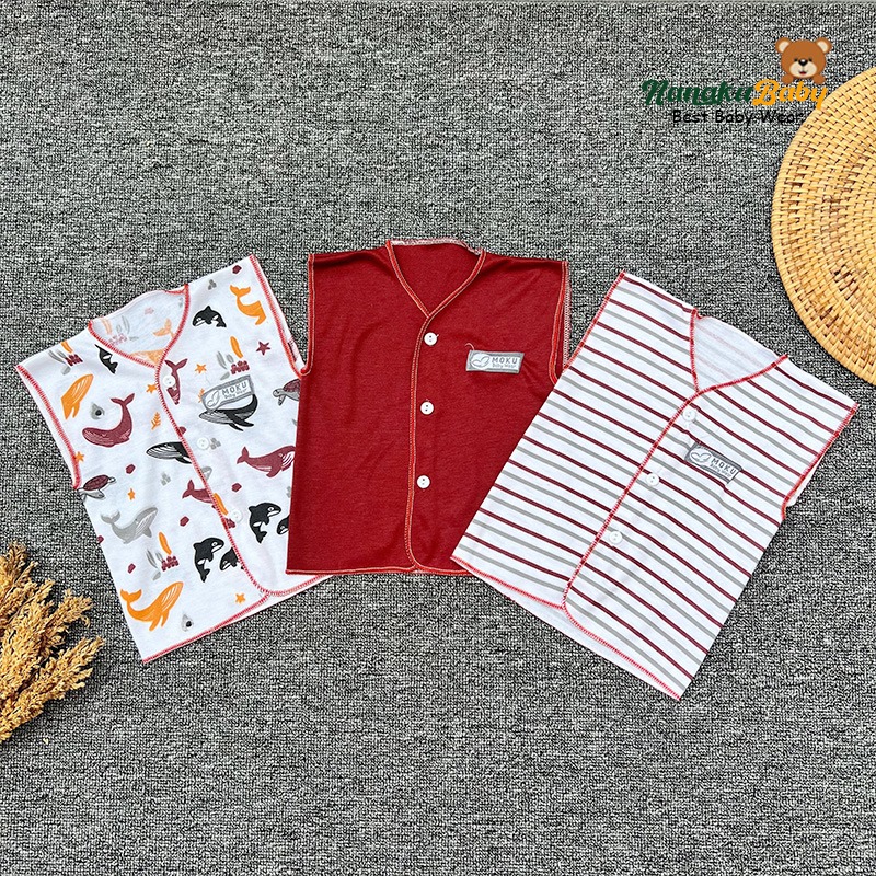 Nanaku Baby - Isi 6 PCS Baju Celana Bayi Baru Lahir Setelan Bayi Newborn Lengan Kutung Celana Pop Series Maroon