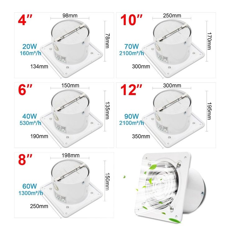 Exhaust Fan 4/6/8/10/12/14/16 Inch Kipas Angin Kipas Atap Kipas Kamar Mandi Kipas Dapur Kipas Angin Hisap Plafon Dengan