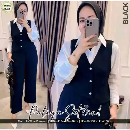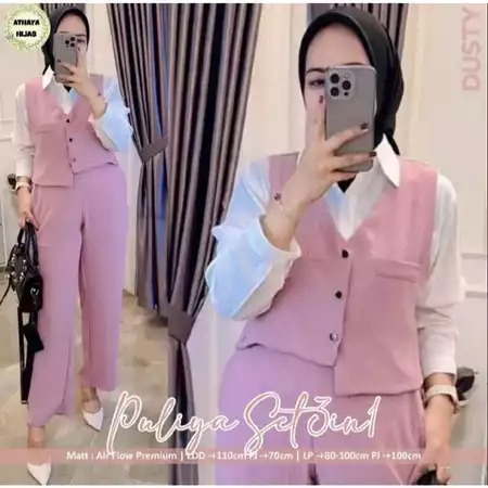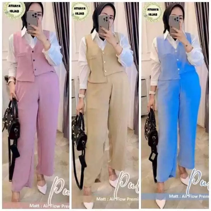 setelan - baju cewek - one set cewek - Puliya Set Crinkle Airflow Terbaru / Setelan Vest Wanita Kekinian