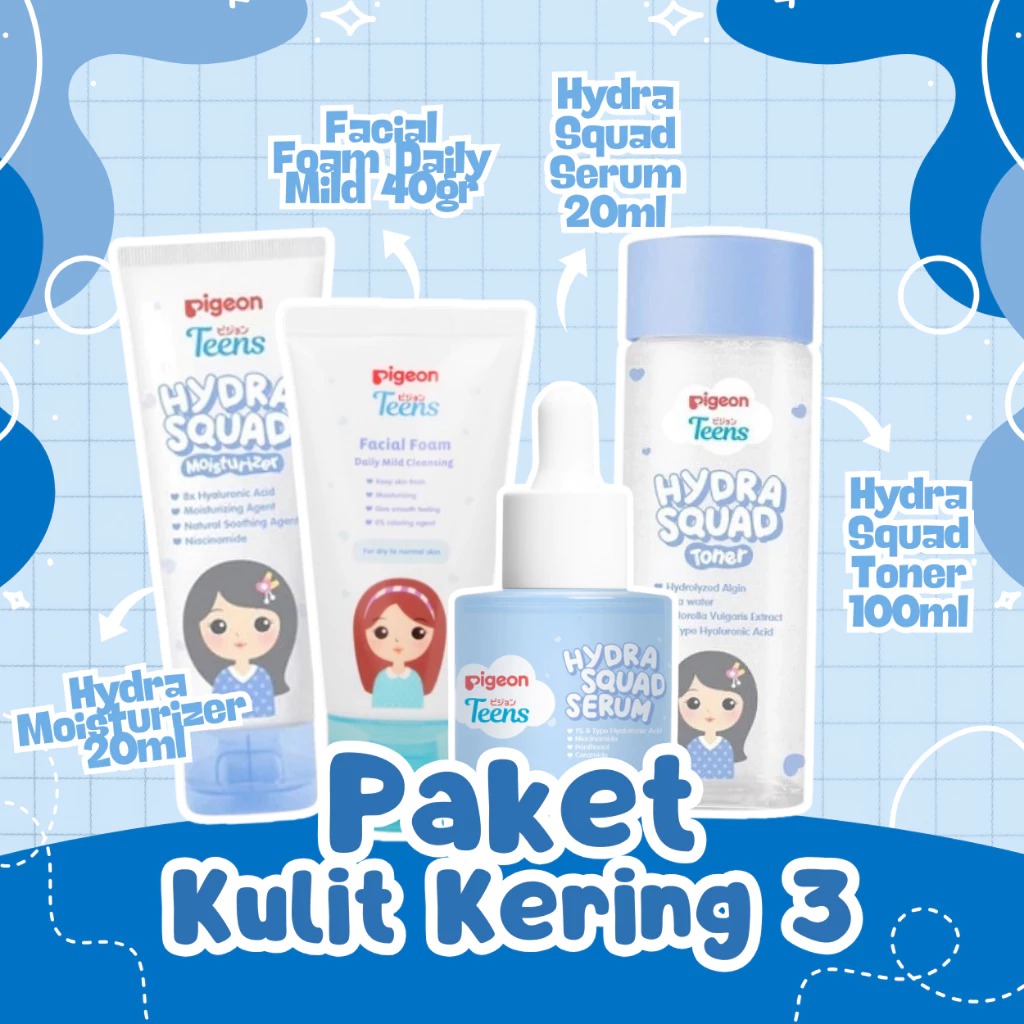 SKINCARE PIGEON TEENS HYDRA SQUAD SERIES SET - Skincare Remaja Paket Ekstra Melembapkan Hyaluronic & Ceramide
