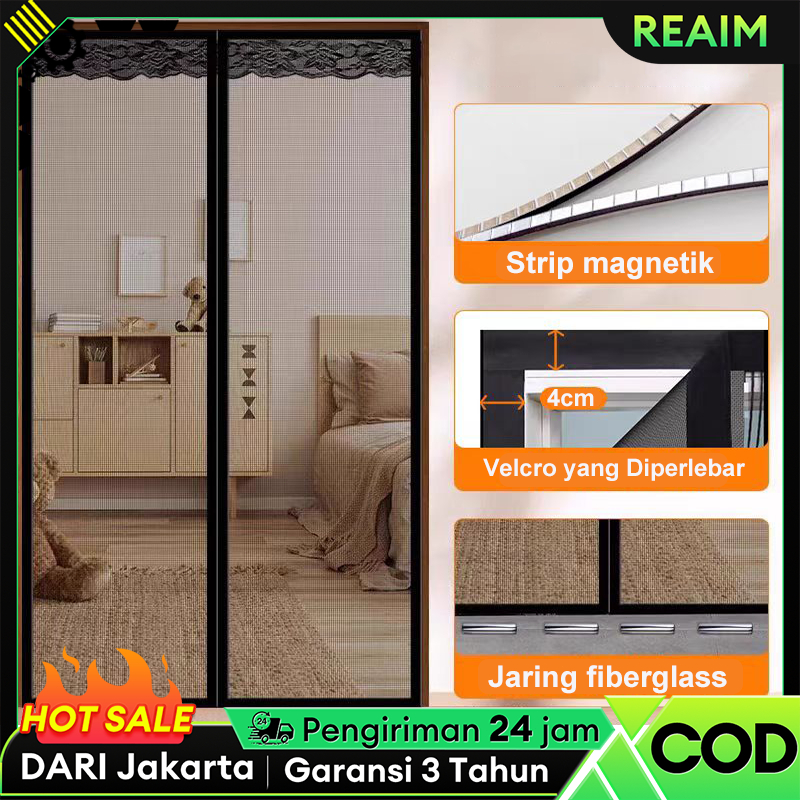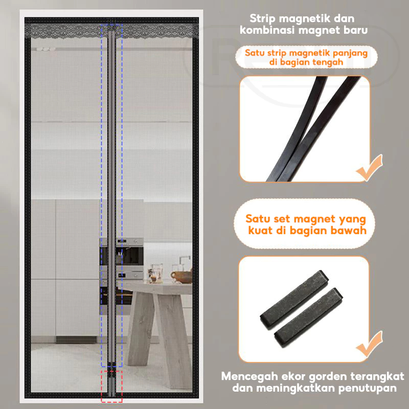 Tirai Magnet Pintu Fiberglass Anti Nyamuk & Tahan Api - Mesh Breathable 90x210cm/100x210cm