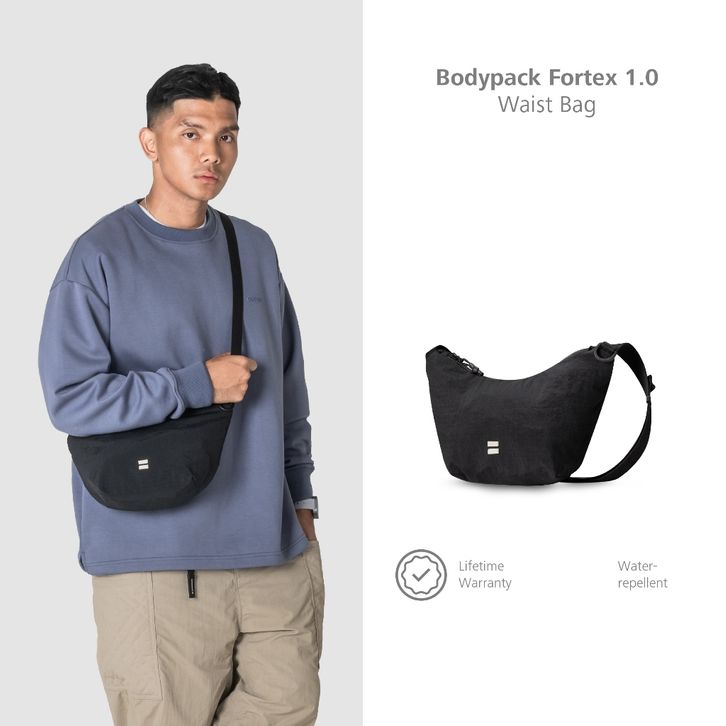 Bodypack Fortex 1.0 Waist Bag Tas Pinggang Travel Lari Sport Ringan Praktis - Hitam