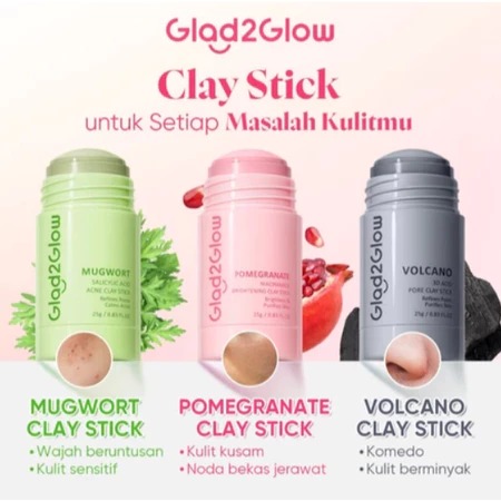 [Star] Masker Wajah Glad2glow Volcano Acid Pore Clay Stick+pomegranate Niacinamide Brightening Mugwort Salicylic Acid