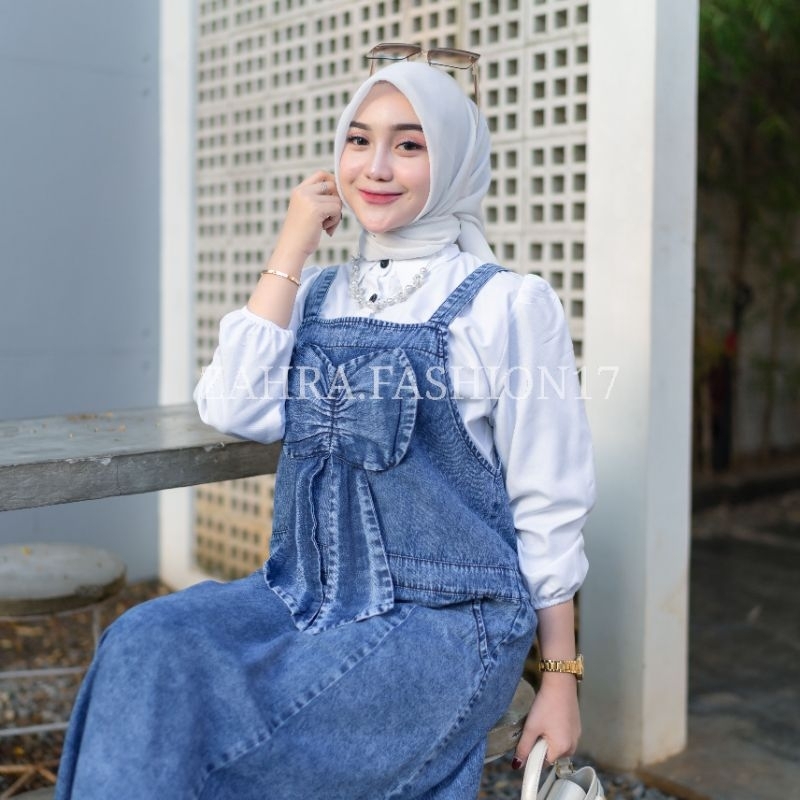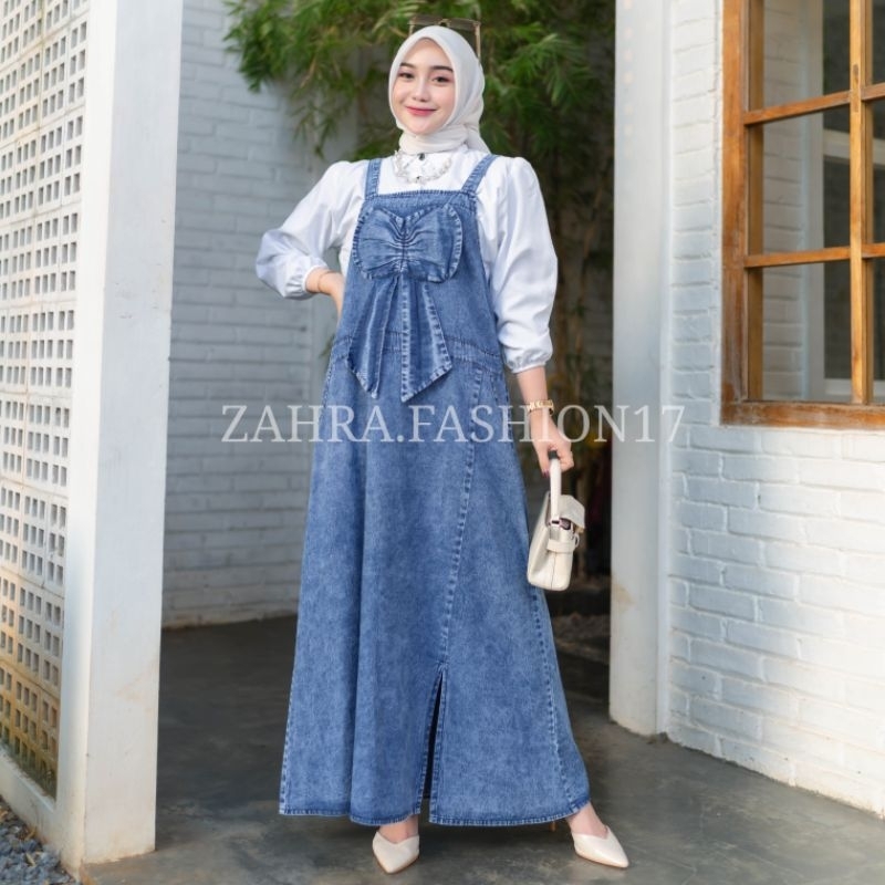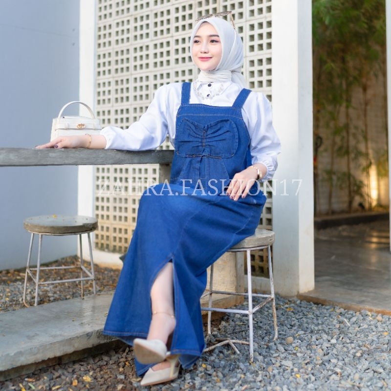 Zahra Overall Set Jeans Wanita Dan Remaja Terbaru Viral Model Kekinian Cantik Nyaman Soft Denim