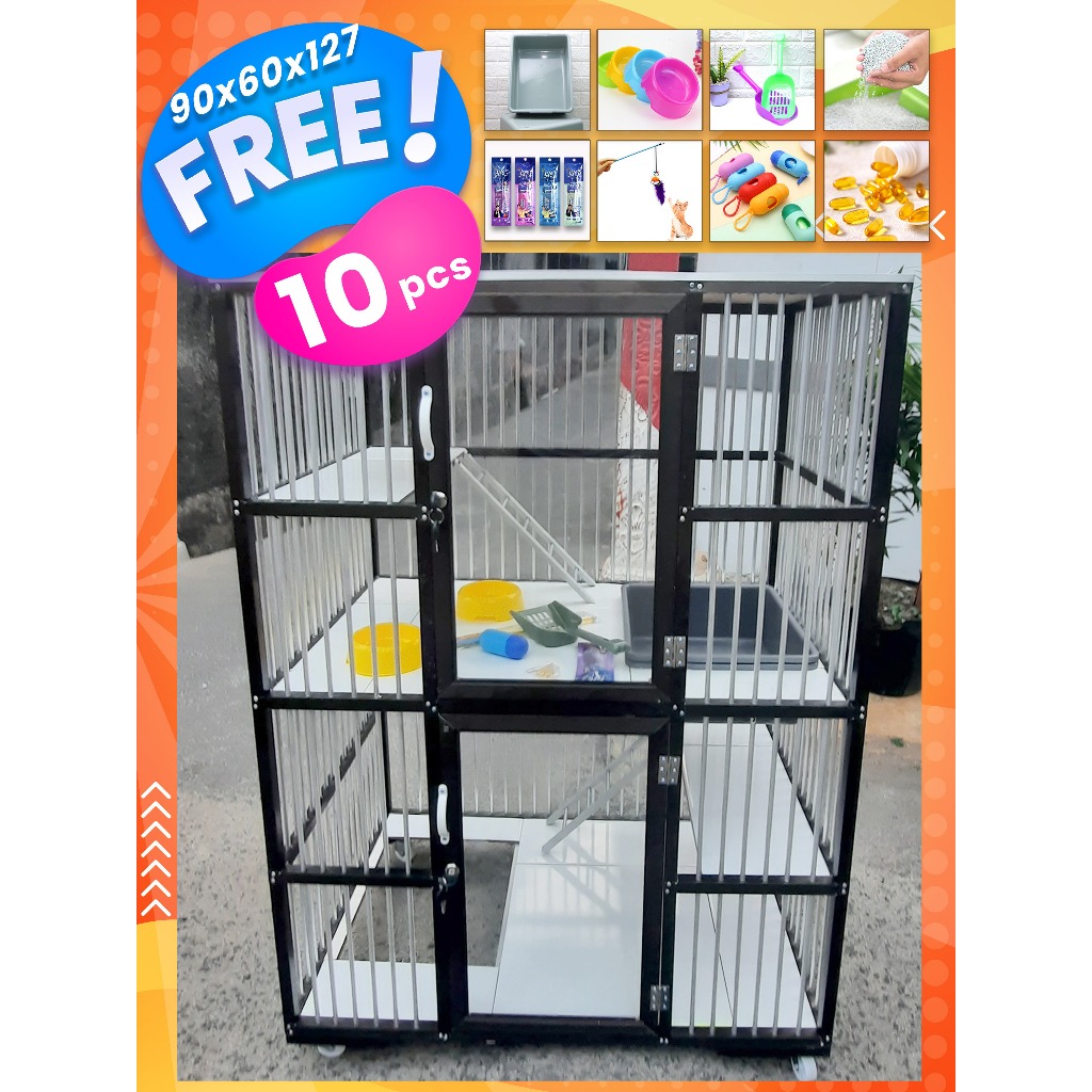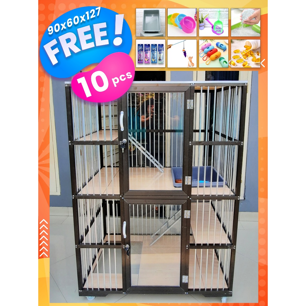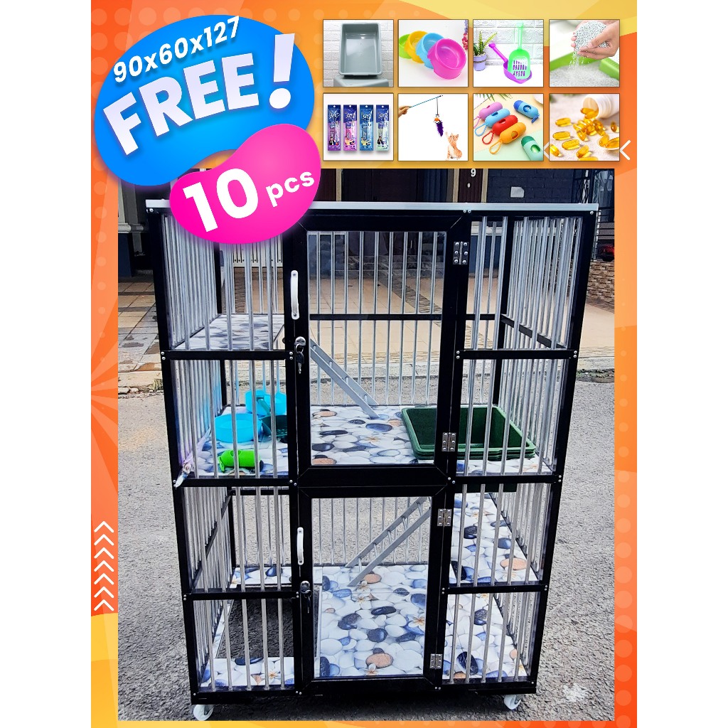 Kandang kucing Jumbo premium kandang kucing aluminium 2 pintu kamar anti karat alas keramik bonus aksesoris lengkap
