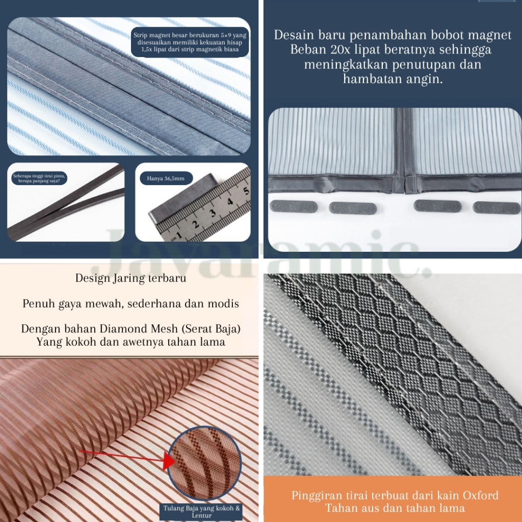 Javaramic Tirai Magnet Premium Fiberglass Tebal Tidak mudah terbakar / Tirai Pintu kamar anti nyamuk