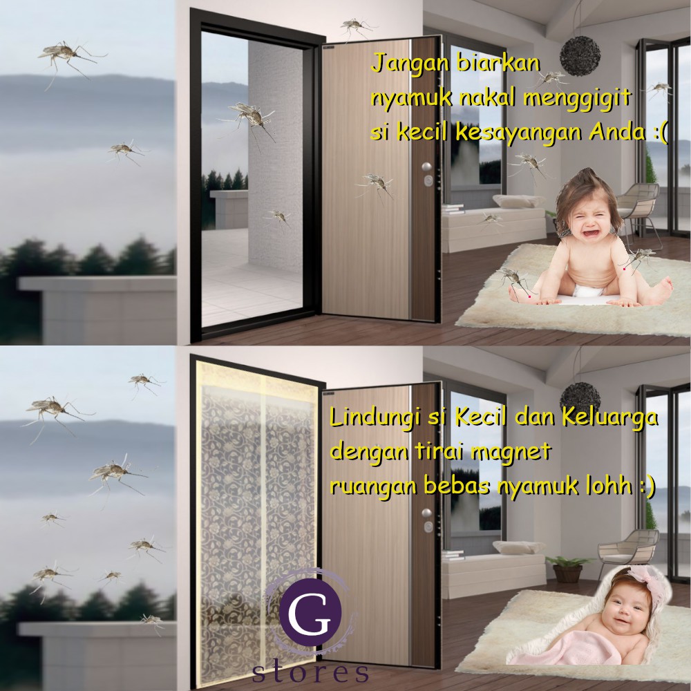 Tirai Magnet Premium Mesh Anti Nyamuk Gorden Magnet Anti Nyamuk Serangga Motif Bunga