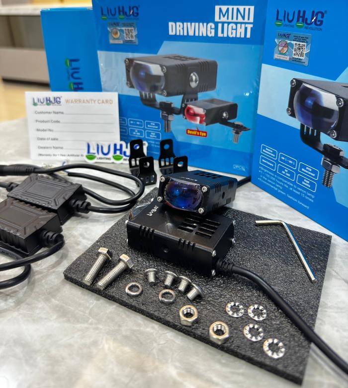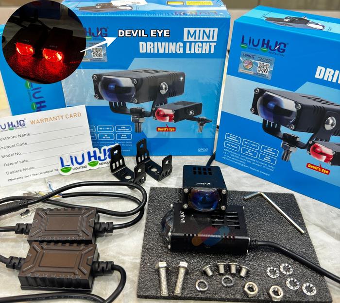 ORIGINAL LAMPU TEMBAK MERK HJG HJ1 D2 MINI SLIM SOROT LED LASER GUN 25 WATTT 2 WARNA TERDAPAT KIPAS