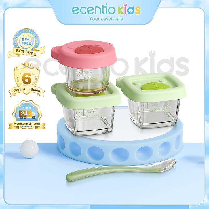 Tempat MPASI Bayi 3 Pcs Kaca Dengan Tutup Silicon