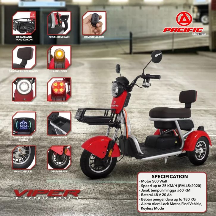 Sepeda Listrik E-BIKE PACIFIC VIPER X SIERA 3 Roda - Resmi