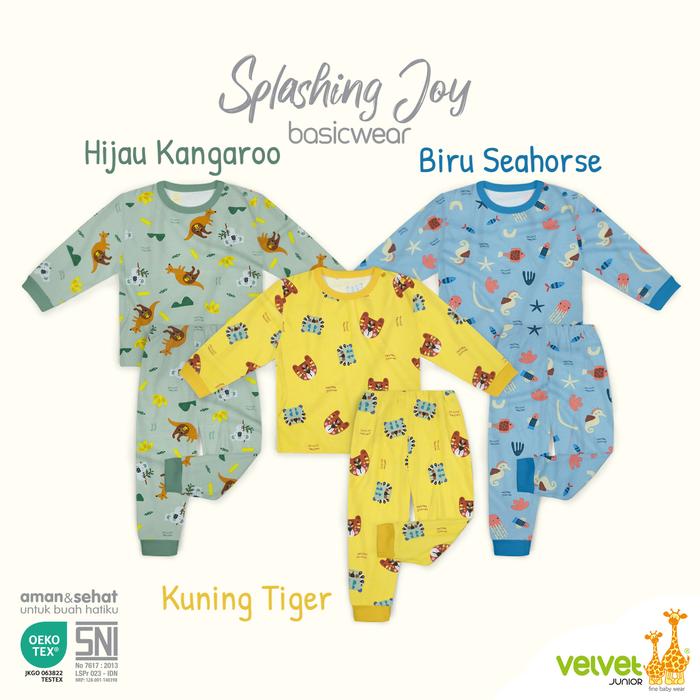 Promo Velvet Junior - Size M - Stelan Oblong Lengan Panjang Celana Panjang - Biru Singa Promo