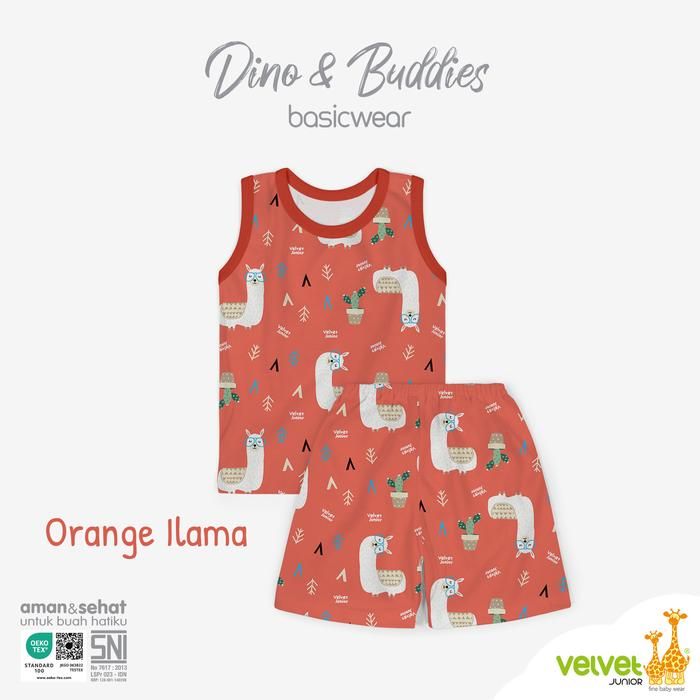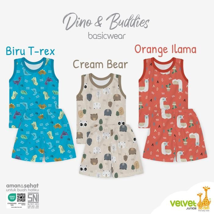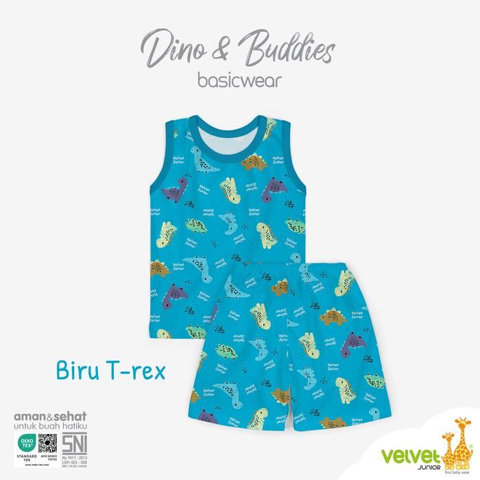 Terlaris Velvet Junior - Size S - Oblong Singlet Kutung Celana Pendek - Biru T-rex Promo