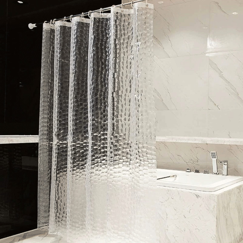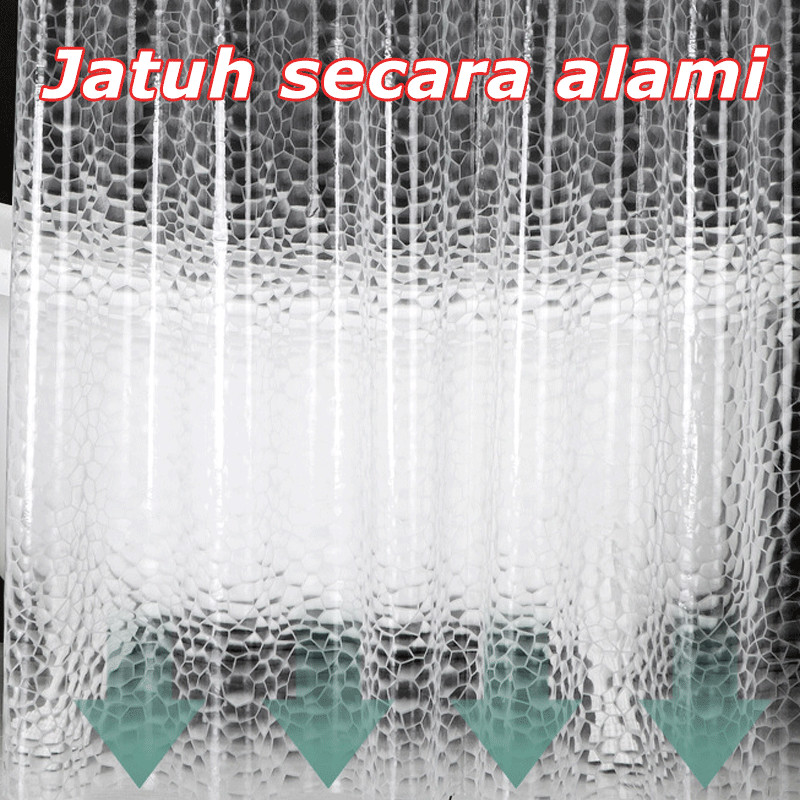 180x200cm Tirai Kamar Mandi Anti Air Bahan EVA Dengan Pengait Shower Curtain Premium Tahan Air 3D Kubik Air