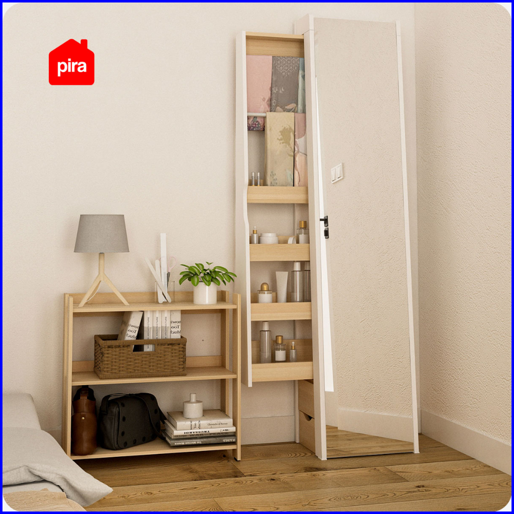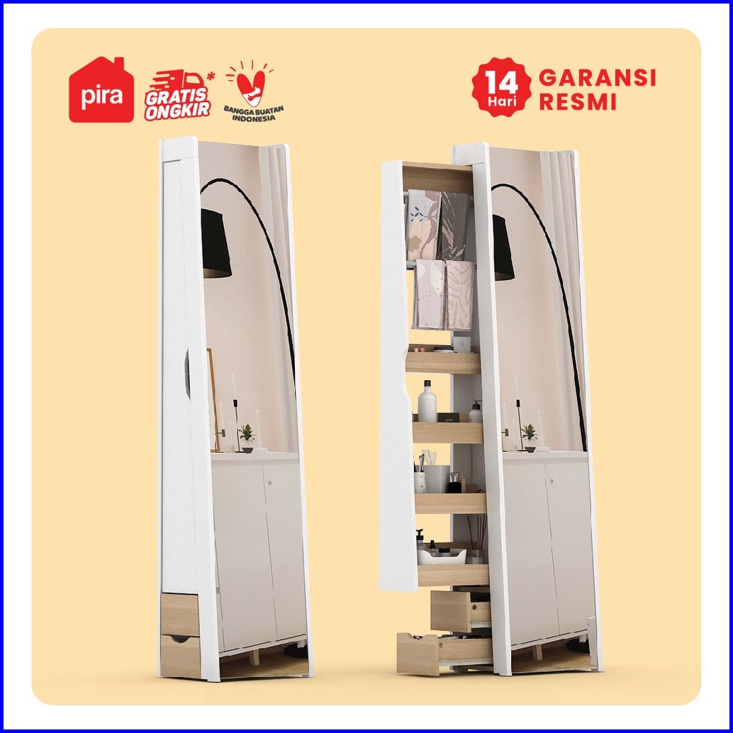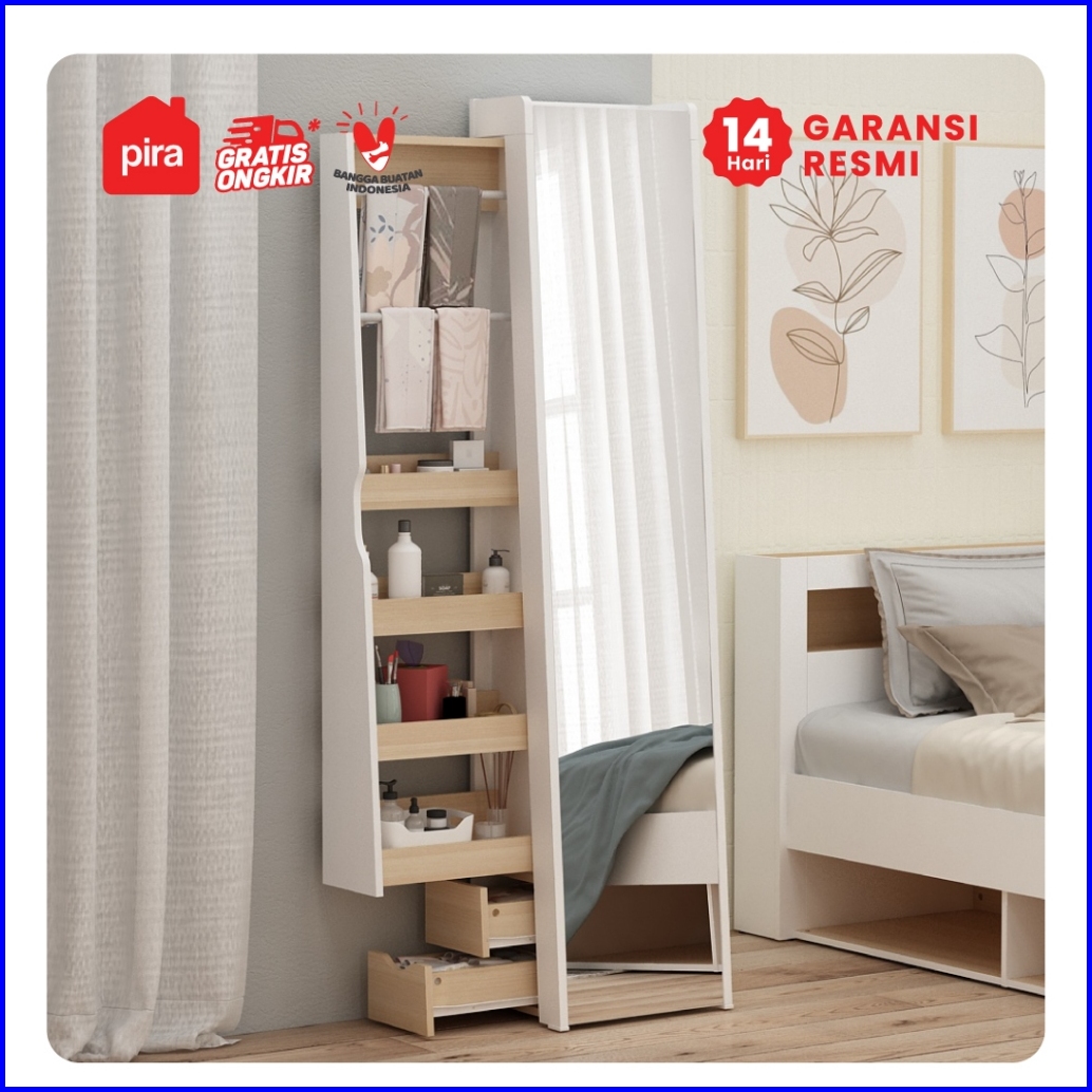 Pira - Sada Ds40 Cermin Berdiri Full Body Dengan Laci Dan Rak Jilbab Rak Pakaian