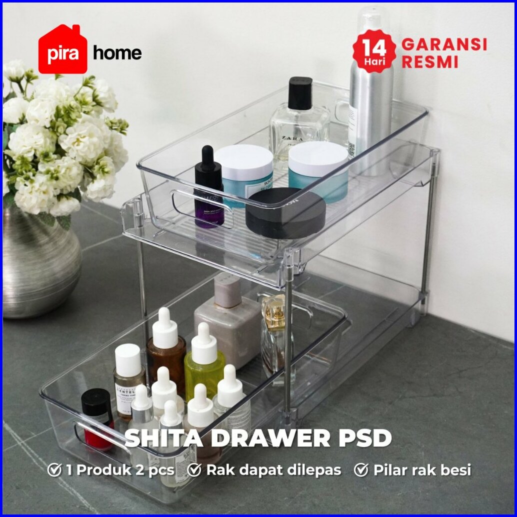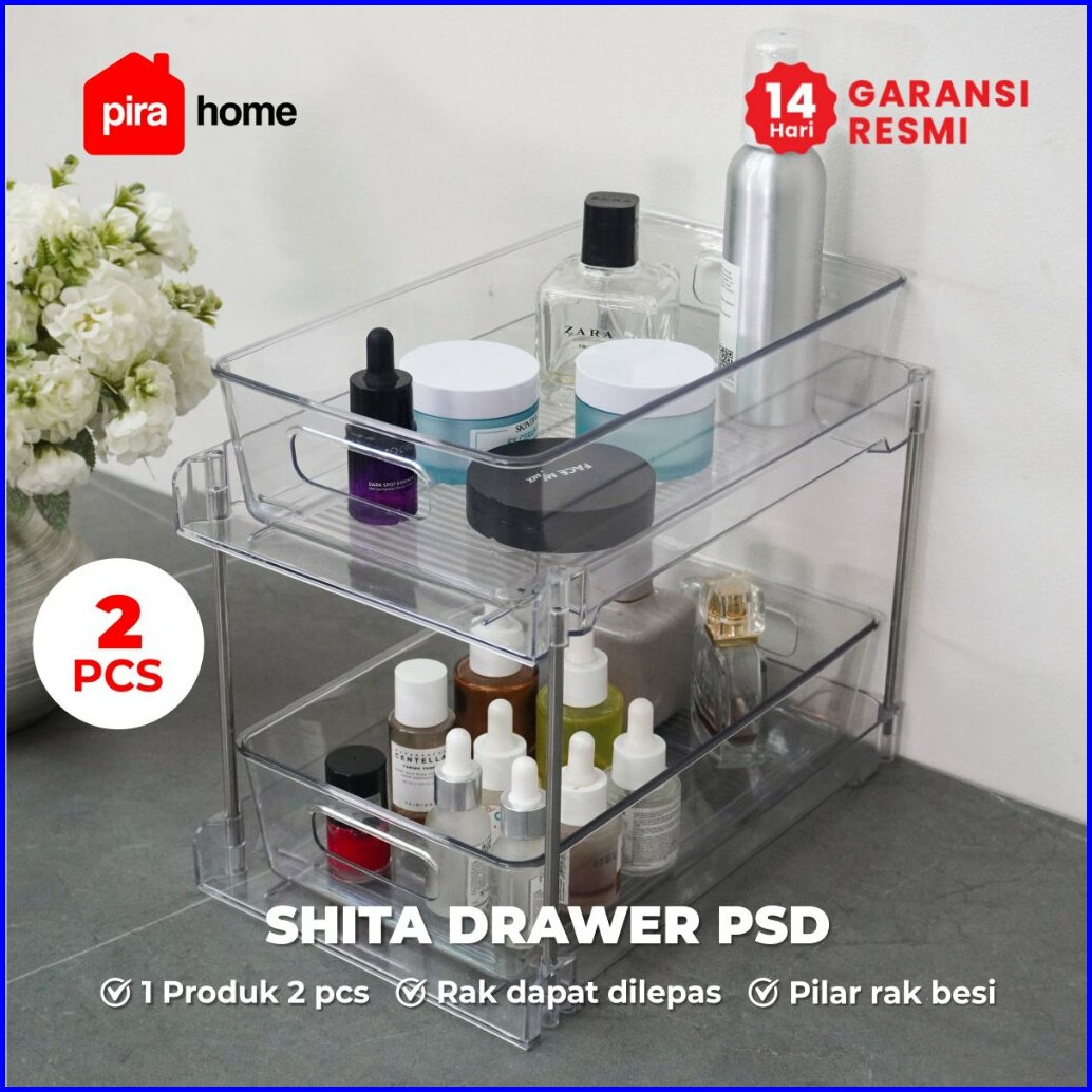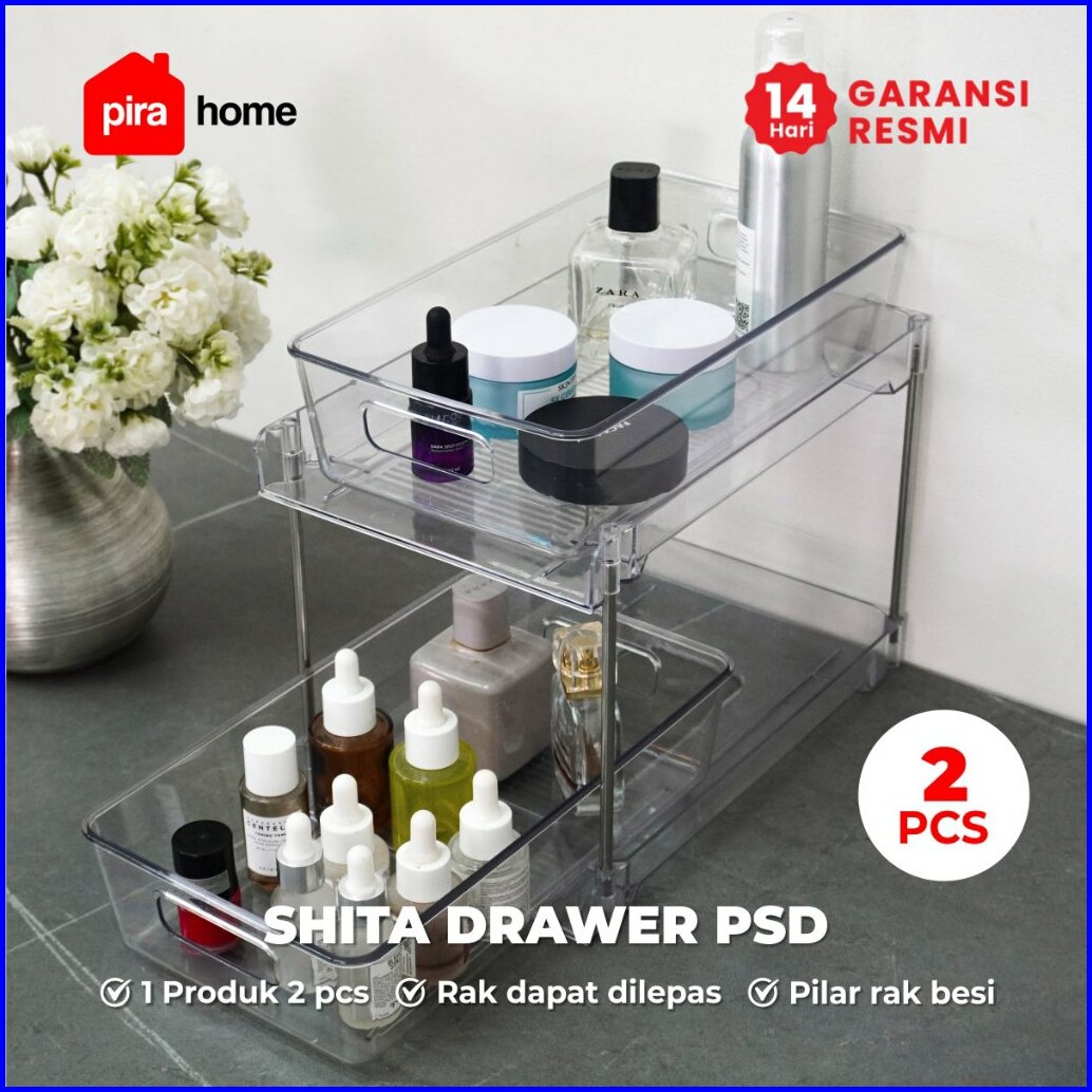 Pira Home - Shita Drawer Psd Rak Laci Bening Make Up Organizer Transparan 2 Tingkat