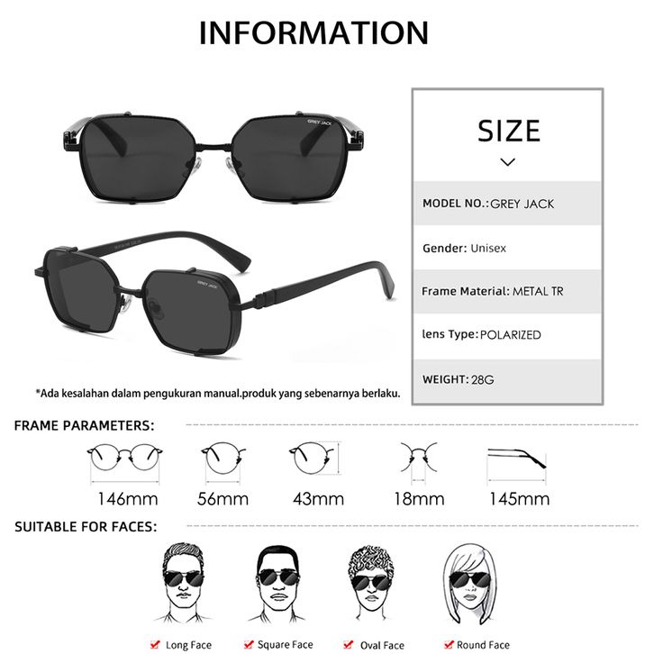 PROMO Grey Jack Kacamata Hitam Sunglasses Polarized Model Kotak Keren Unik Fashion Pria Wanita Bahan Metal+TR 31892