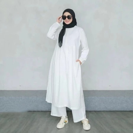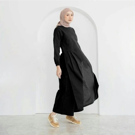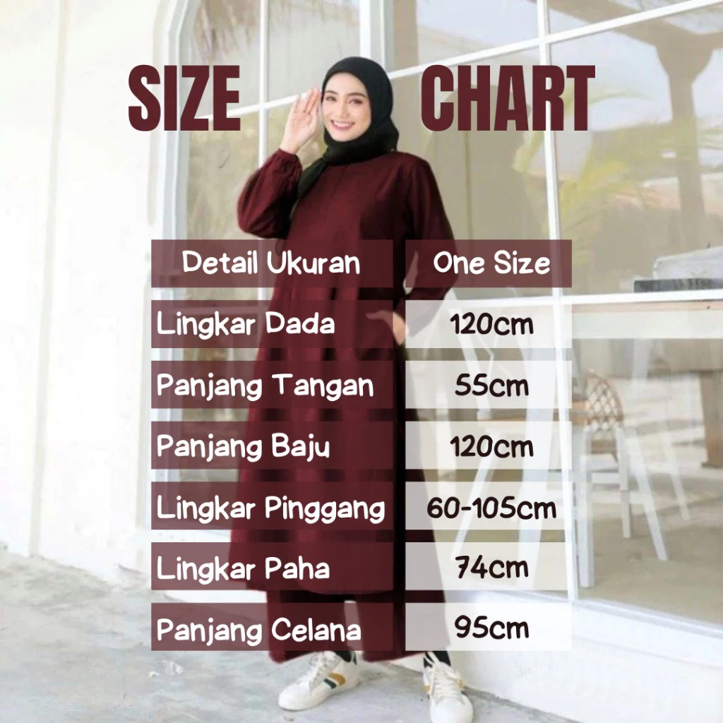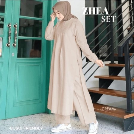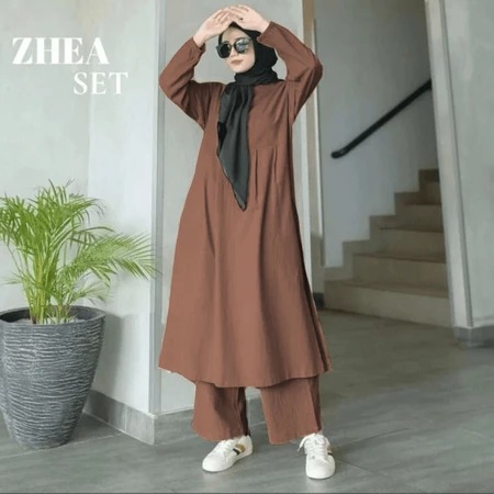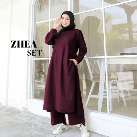 Setelan cewek - one set cewek - baju cewek - Zhea Set Setelan Tunik + Celana Kulot Jumbo Wanita Rami Fashion Muslim
