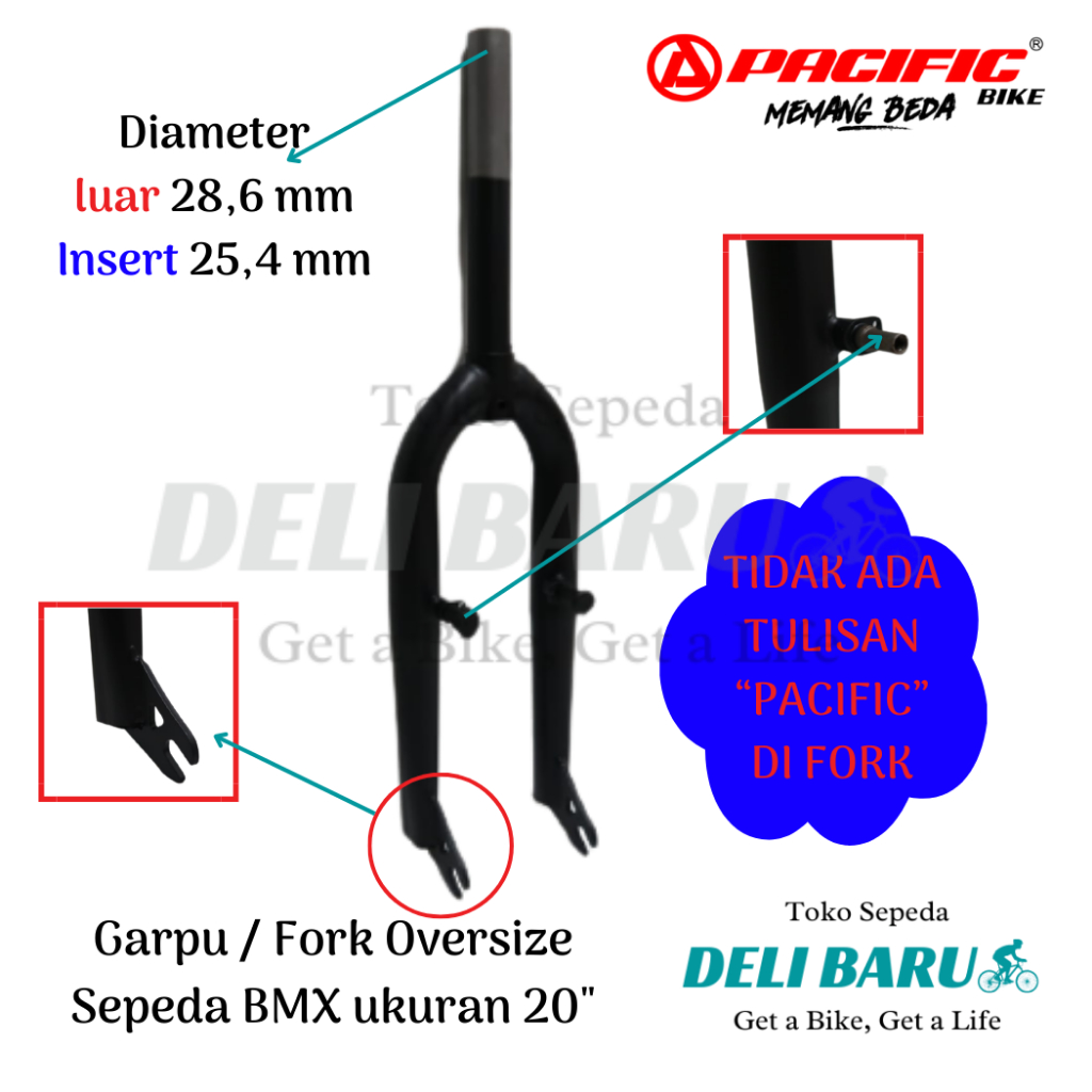 Pacific Fork Oversize Tanpa Drat Garpu 20 OS Pivot 28.6 mm Hitam Polos Besi Sepeda BmX