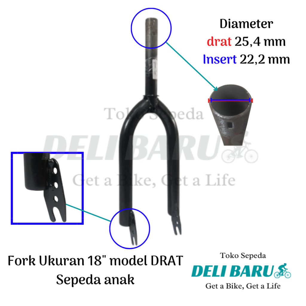 Fork model drat Garpu standar 18" hitam murah sepeda anak