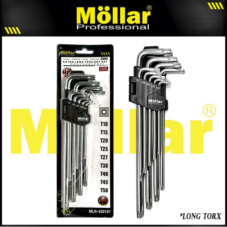 KUNCI L MOLLAR FULLSET SET 9 PCS / STAR BINTANG T50 T40 T25 / FULL SET / BALLPOINT PANJANG TORX HEX LONG FLAT