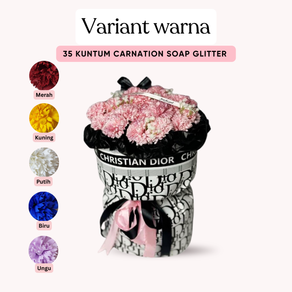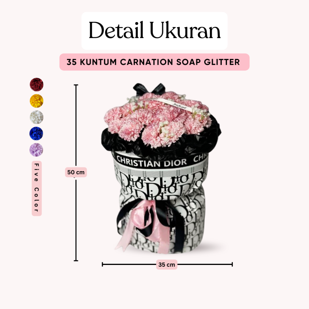 BUCKET [GLITTER 35 KUNTUM] Dior Carnation Glitter Bouquets Buket Bunga Bling Bling Untuk Pasangan Acara Anniversary Ulan