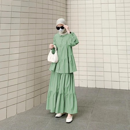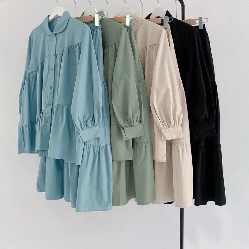 Setelan cewek - one set rok - baju cewek - Katerine One Set Rok Wanita Ruffle 2in1 Setelan Korean Style Daily Dewasa