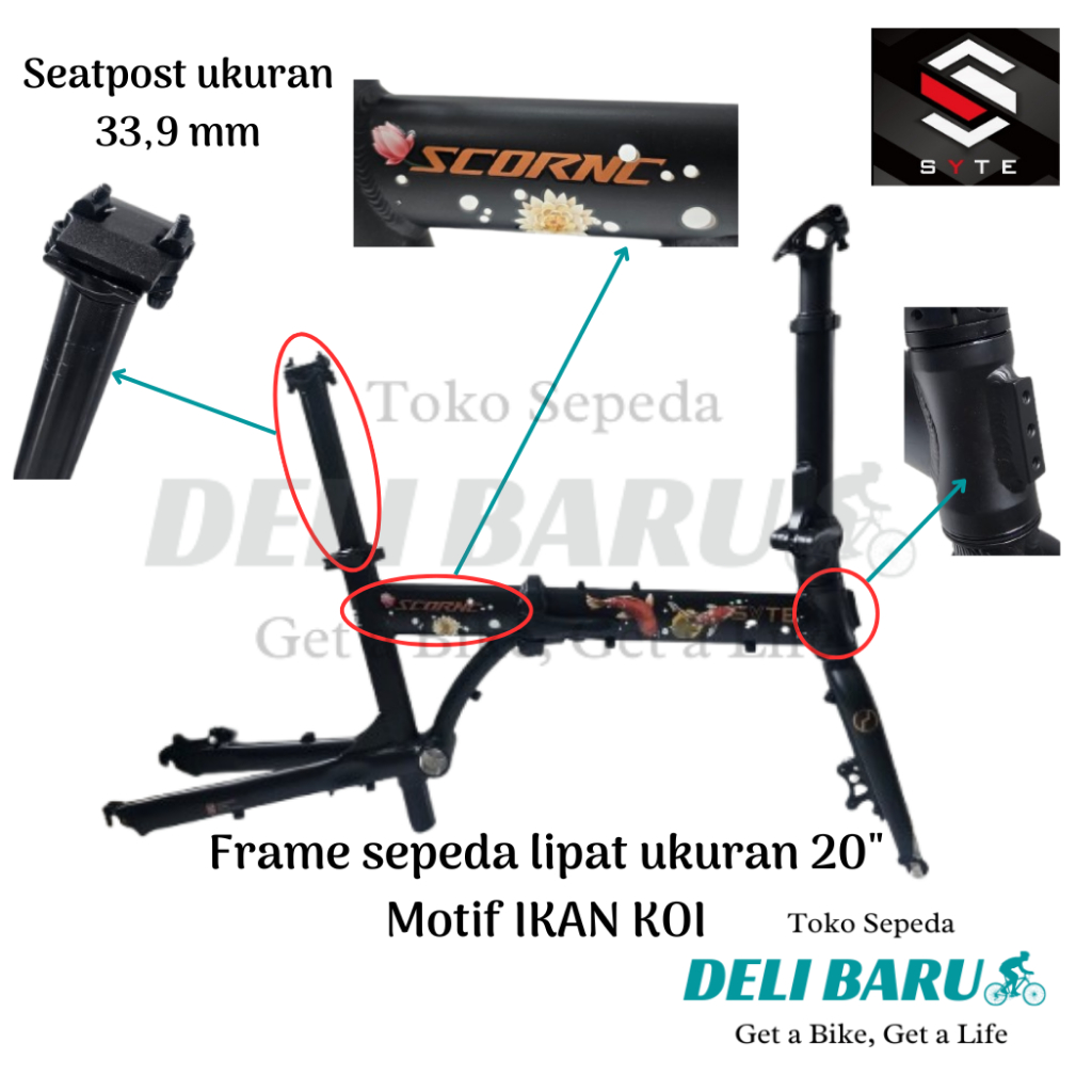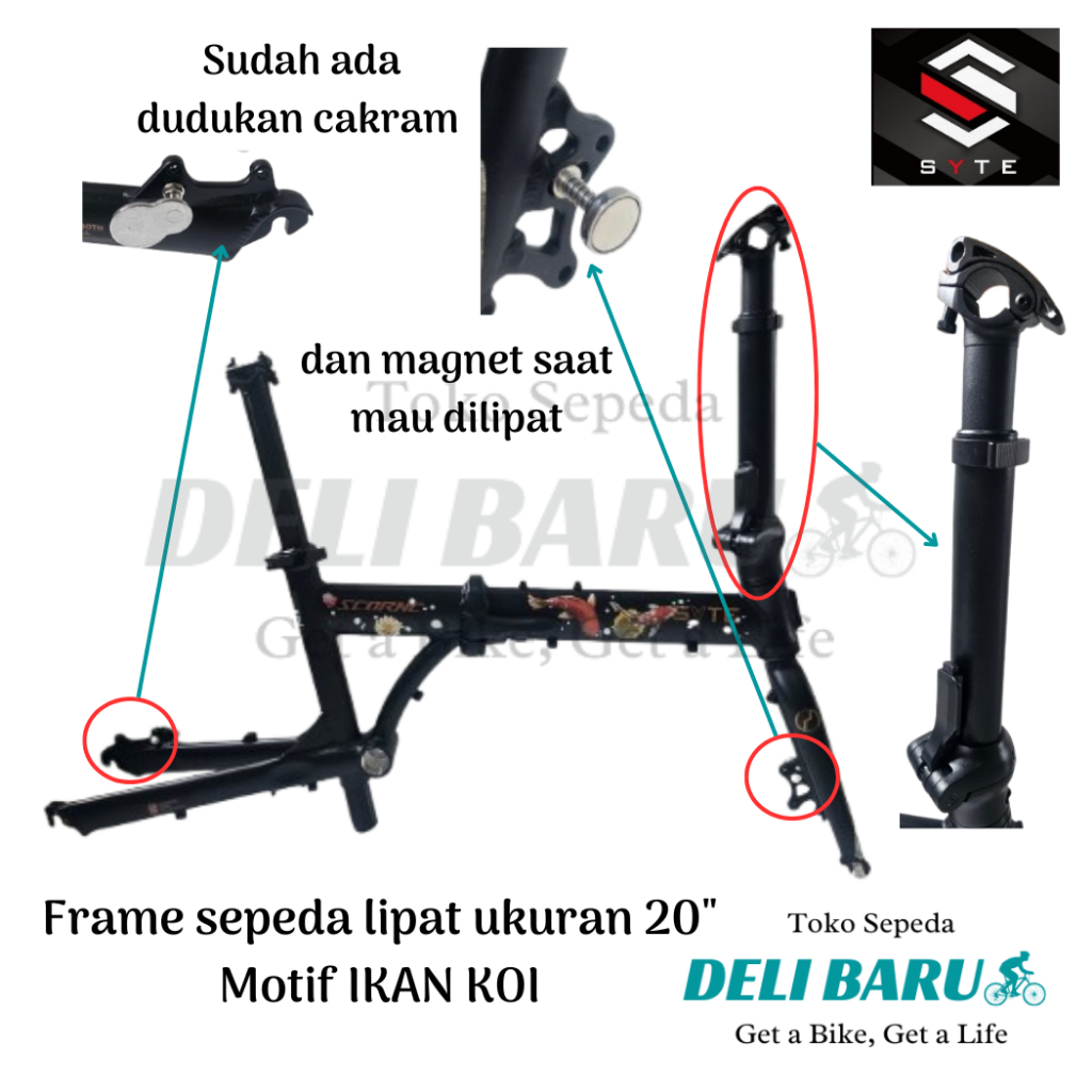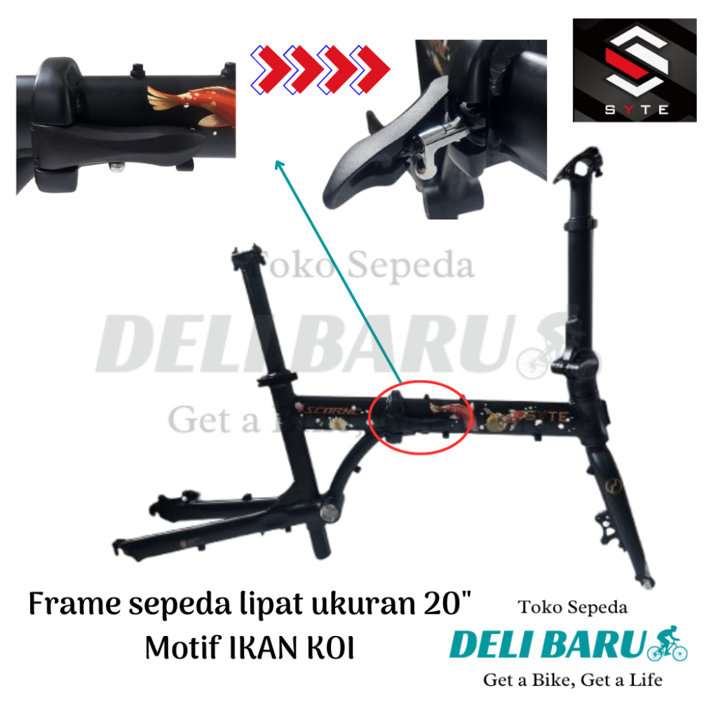 Syte Frame Sepeda Lipat Ukuran 20" Motif Ikan Koi Special Edition Batangan Sepeda 20 Murni 20 Plus Bahan Full Alloy Disc