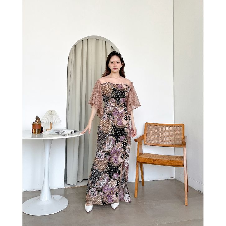 (GRATIS ONGKIR) BATIK WANITA / BATIK WANITA MODERN / DRESS PRISCILLA BATIK 4 UKURAN M L XL XXL BATIK GAUN BAHAN FOIL
