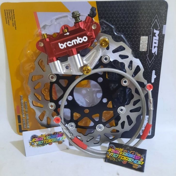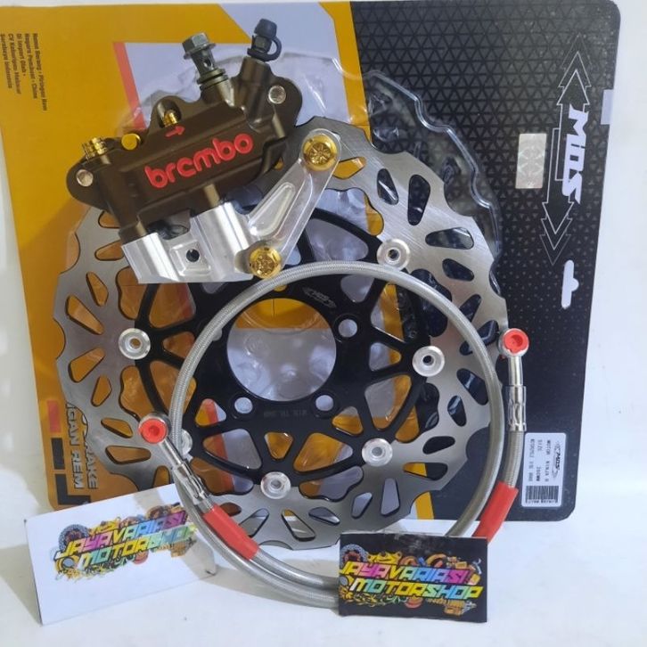 PAKETAN 1SET DEPAN NINJA 2TAK KALIPER BRCMBO MONOBLOK 4PISTON 4P CNC+BREKET MONOBLOK 4P + BAUT PROBOLT +SELANG REM CA