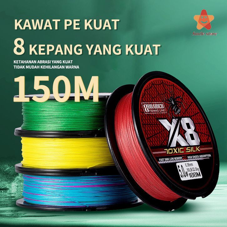 Senar Pancing Senar Pancing Tahan Aus Senar PE X8 Merah Anti-Kusut Tali Pancing Jalinan 150m Tali Pancing Halus dan Lem