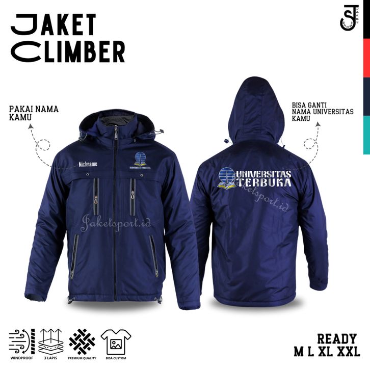 JAKET PRIA UNIVERSITAS TERBUKA UT BISA REQUEST ATAU POLOS NYAMAN SEMI WF CASUAL CLIMBER FREE NAMA