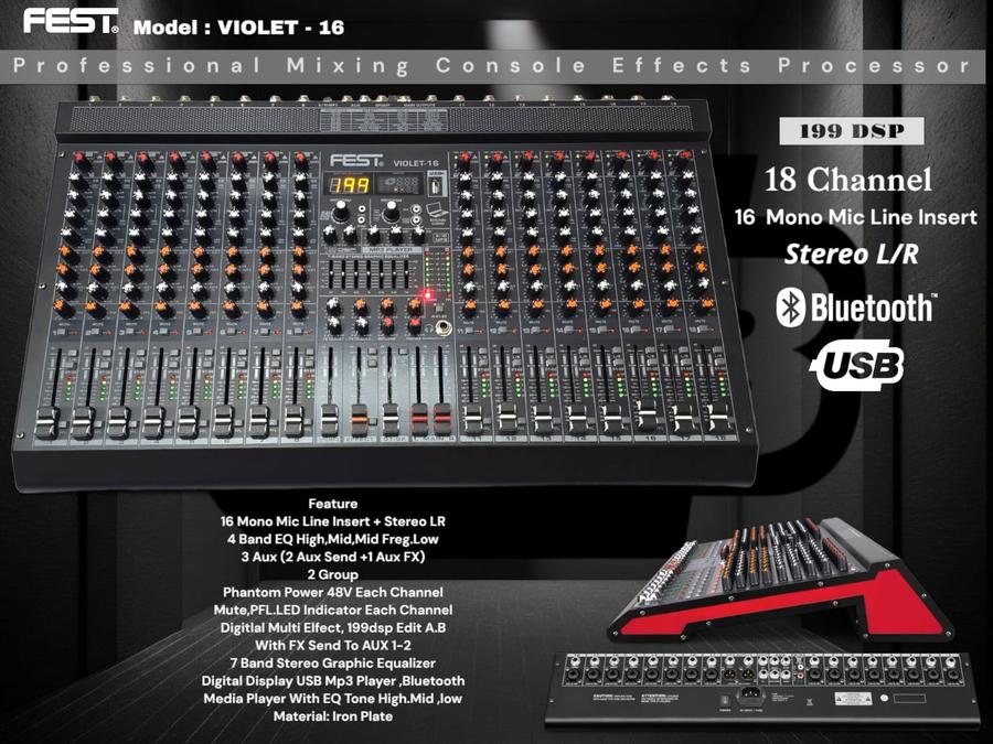 Mixer Fest Violet 16 | Violet16 Original 16 Channel + Stereo L R Channel Bluetooth
